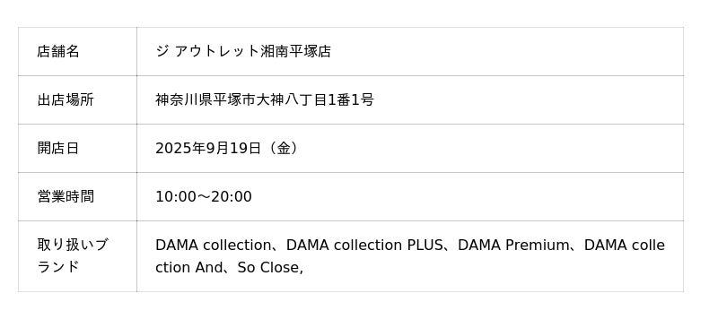 株式会社dinos(本社:東京都中野区、代表者:代表取締役社長 加藤 浩輔)は9月19日、神奈川県平塚市に所在するアウトレット「THE OUTLETS SHONAN HIRATSUKA」に、「ジ アウトレット湘南平塚店(https://www.dinos.co.jp/outletshop_s/)」をオープンします。