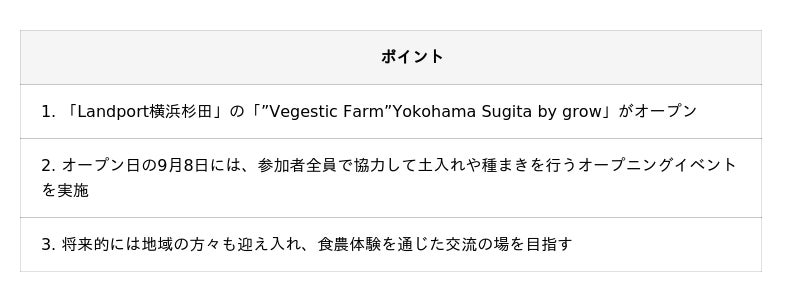 【”Vegestic Farm”Yokohama Sugita by growの詳細について】