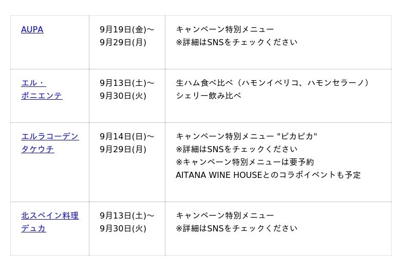 スペイン貿易投資庁(ICEX)は、スペインの多彩な食文化とワインの魅力を広く伝える国際的な公式キャンペーン「Eat Spain Drink Spain」を、9月13日~30日まで日本で開催いたします。