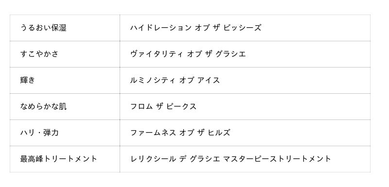 そして1985年のブランド創立以来、母国が誇る豊かな自然と先端技術を駆使したスキンケアを研究開発してきました。セレブリティたちをも魅了するスパでのトリートメントとブランドの世界観、「時間の魔術師」と称されるにふさわしい、エイジングケア(*)のパイオニアブランドとして今では世界中のひとびとに愛されています。永遠の美しさをかなえるラグジュアリーなスキンケアラインをあなたに。