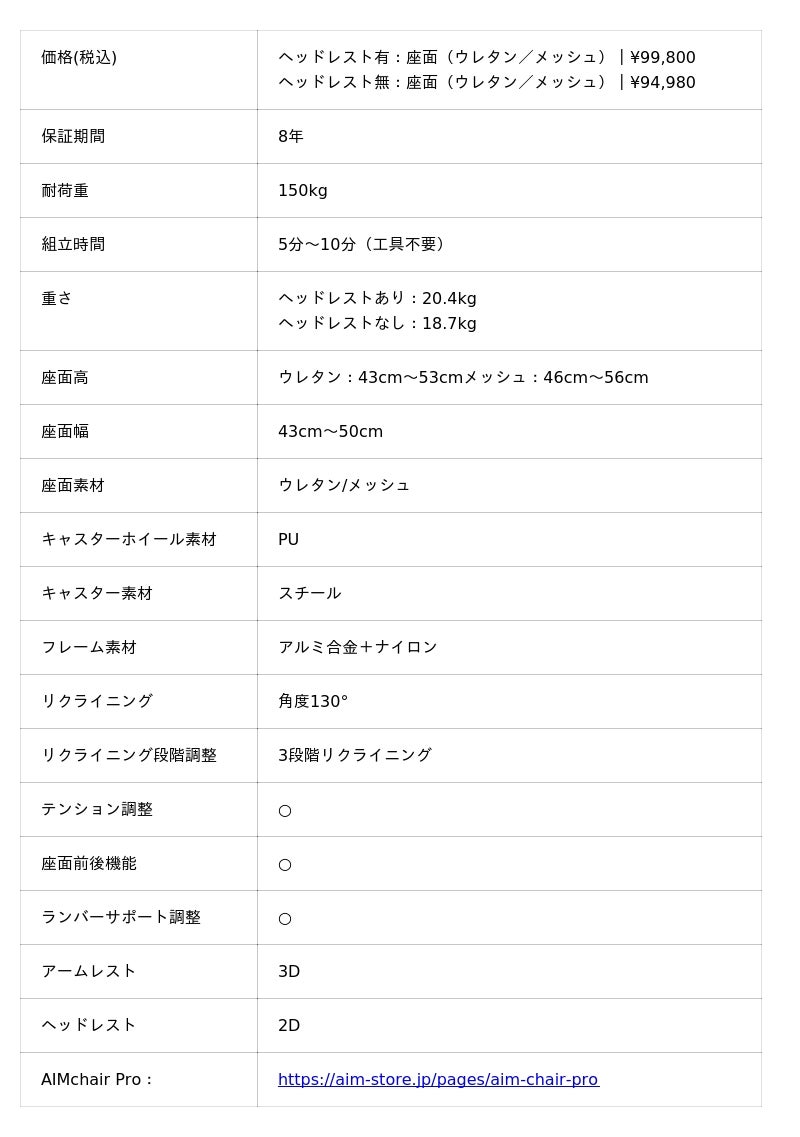 【AIMchair Pro販売サイト:】https://aim-store.jp/pages/aim-chair-pro