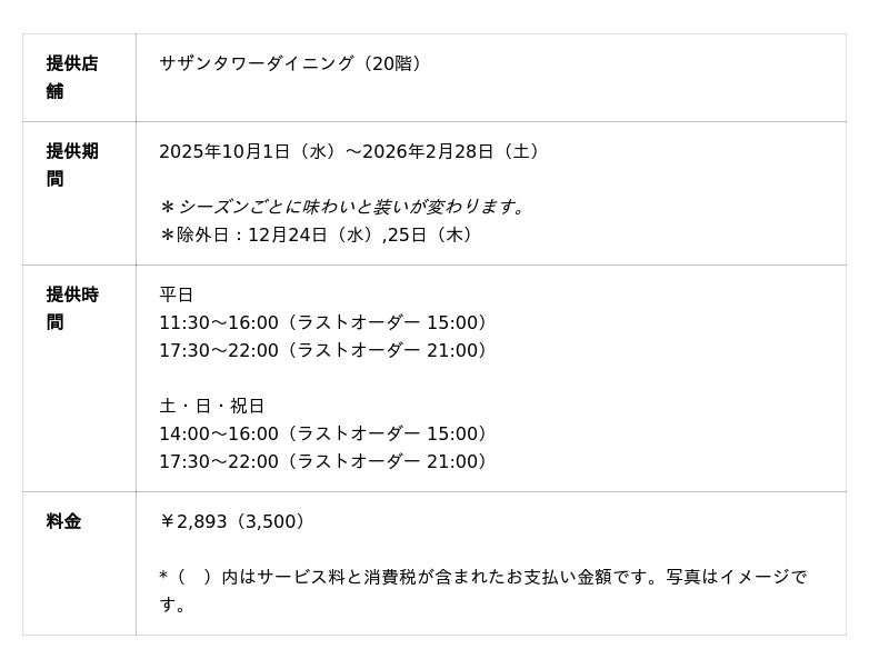*仕入れ状況によりメニュー内容、提供方法・時間などを変更する場合がございます。