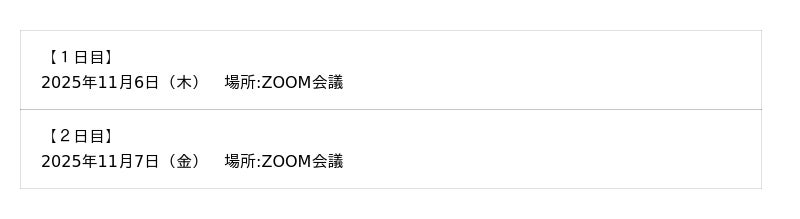 ■開催日程 (御受講の方は1日目と2日目両方をご予約下さい。)