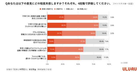 ※本プレスリリースの調査データを引用・掲載される際は、調査名「女性の就労と時間配分に関する実態調査」および、調査元(「株式会社うるる」)、出典 URL(https://www.uluru.biz/news/15833)を明記ください。