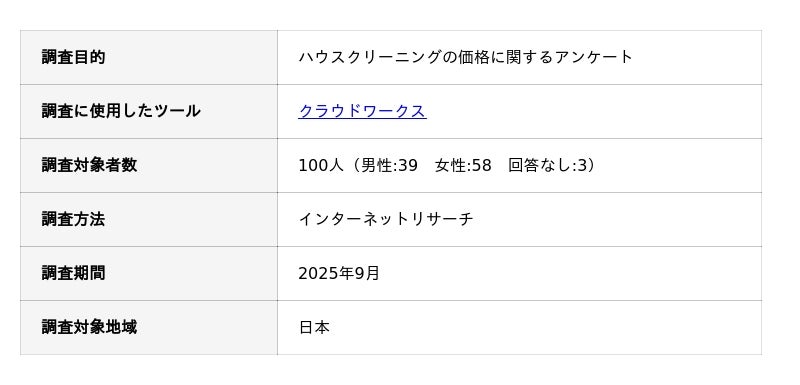 ハウスクリーニングの価格に関するアンケート調査の概要