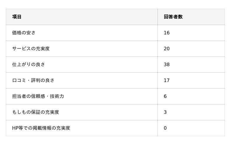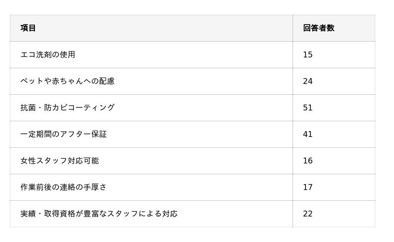 ハウスクリーニング選びにおける以下の基準の中で、最も重視するものは何ですか?