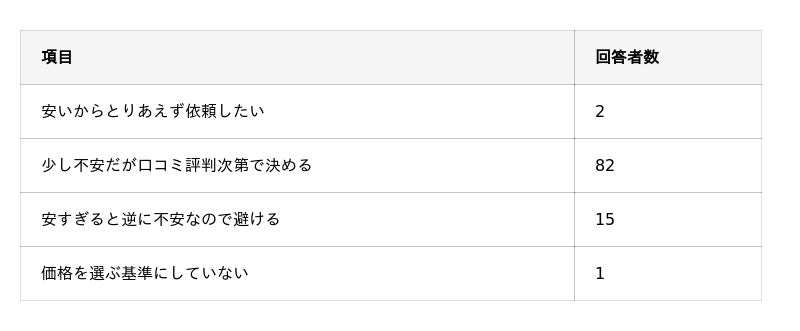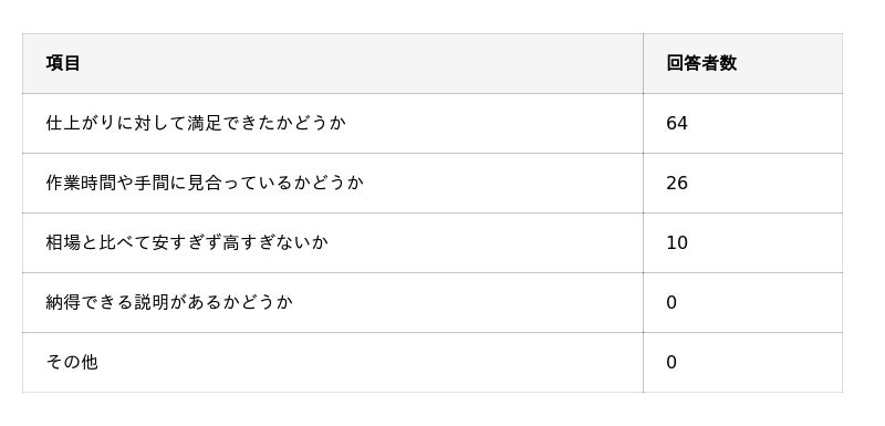 ハウスクリーニングの金額が「適正価格」だと感じる基準は何ですか?