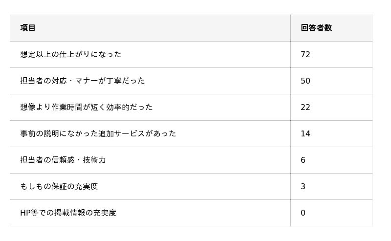 ハウスクリーニングで「価格以上のサービス」だと感じるものは何ですか?