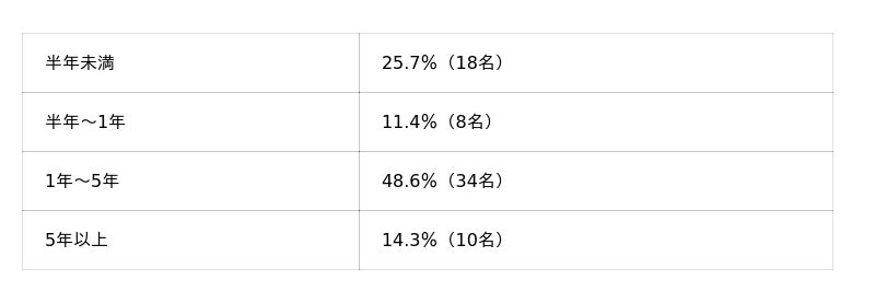 一方で、「半年未満」(25.7%)も一定数おり、新しい在宅ワーカー層も含まれていることが分かります。