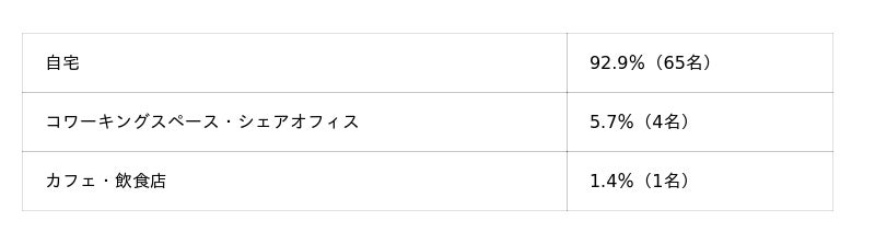 仕事場所は「自宅」が92.9%と圧倒的多数を占めており、自宅の仕事環境が疲労に直結している可能性を示唆しています。