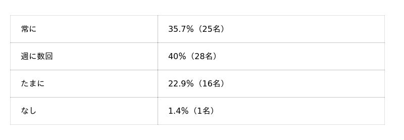 「常に」(35.7%)と「週に数回」(40%)を合わせると75.7%に達します。