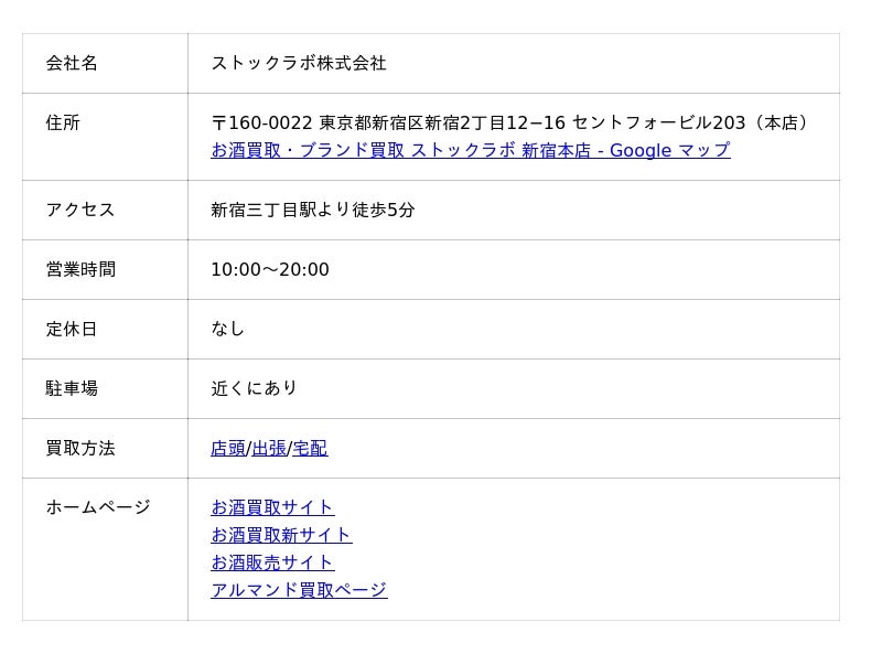 ここでは、ストックラボのアルマンド買取における3つの特徴をお伝えします。まずは、ストックラボの企業情報からご覧ください。