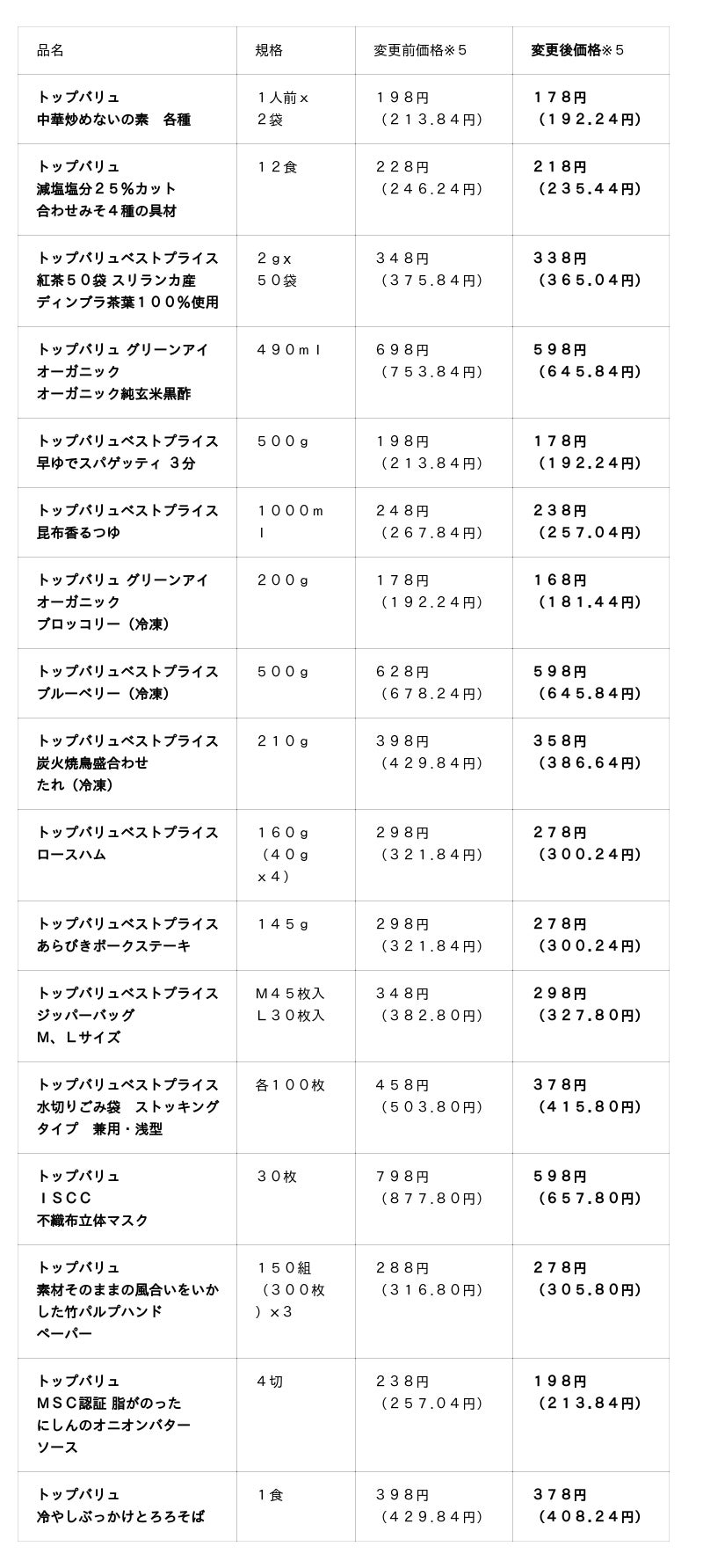 イオンは10月1日から、「イオン」「イオンスタイル」「マックスバリュ」など、全国約10,000店舗※1で、4月に続き今年2度目となるトップバリュ商品の値下げを実施します。