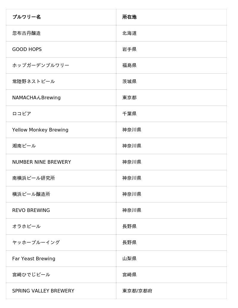 ※北から順に掲載。提供ブルワリーは予告なく変わる可能性がございます。