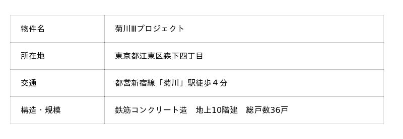 収益マンション事業として開発を進めておりました菊川IIIプロジェクト(以下、本物件)が竣工しましたので、お知らせいたします