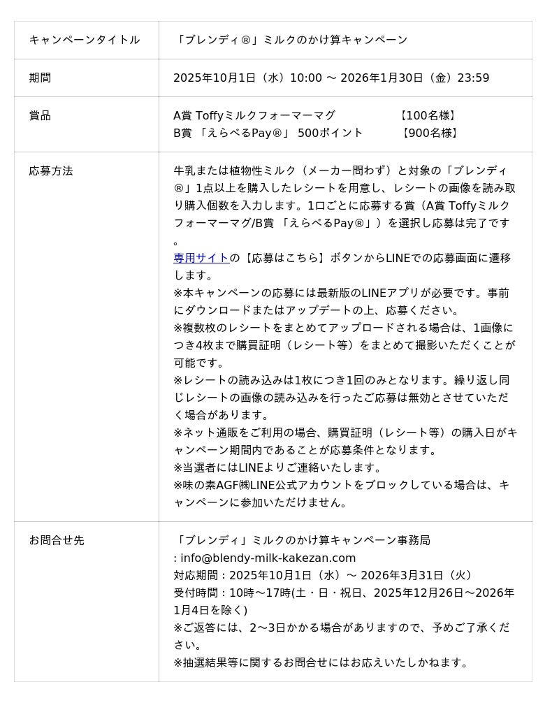 【「ブレンディ(R)」ミルクのかけ算 マストバイキャンペーン 実施概要】