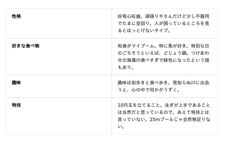 どこかで家族と一緒に暮らしている…らしいが、まだまだ謎も多い。