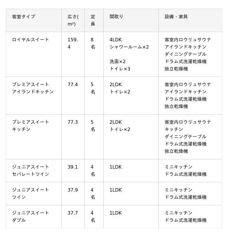 ■全室スイートルーム仕様(37.7m²~159.4m²)
