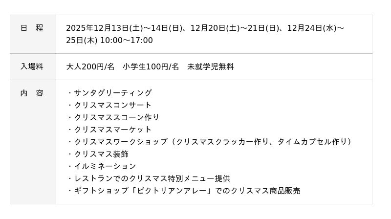 海外で迎えるクリスマス気分を体験「クリスマスイベント」