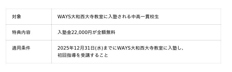 ◼️ WAYS大和西大寺教室 開校記念キャンペーンについて