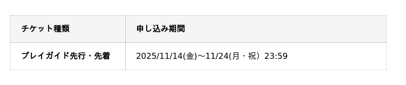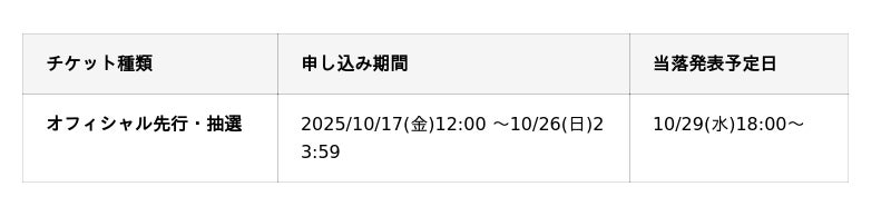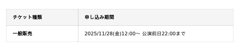 チケットはチケットぴあにて、下記チケットスケジュールの通り販売いたします。