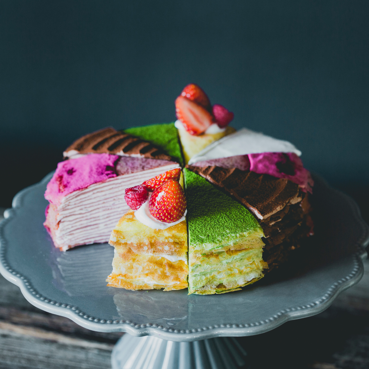 見た目にもアートなミルクレープの専門店。一枚ずつ丁寧に焼き合わせることで、ほどけるような食感に。