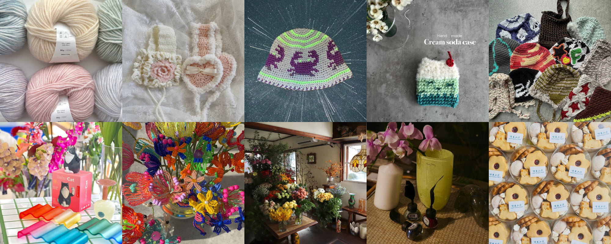 アートで個性的な韓国毛糸を扱う編み物ブランド。引き揃え糸やオリジナルキットを展開し、ワークショップやSNSを通じて「好きなものを編む幸せ」を提案。北海道で初のイベント出店です。