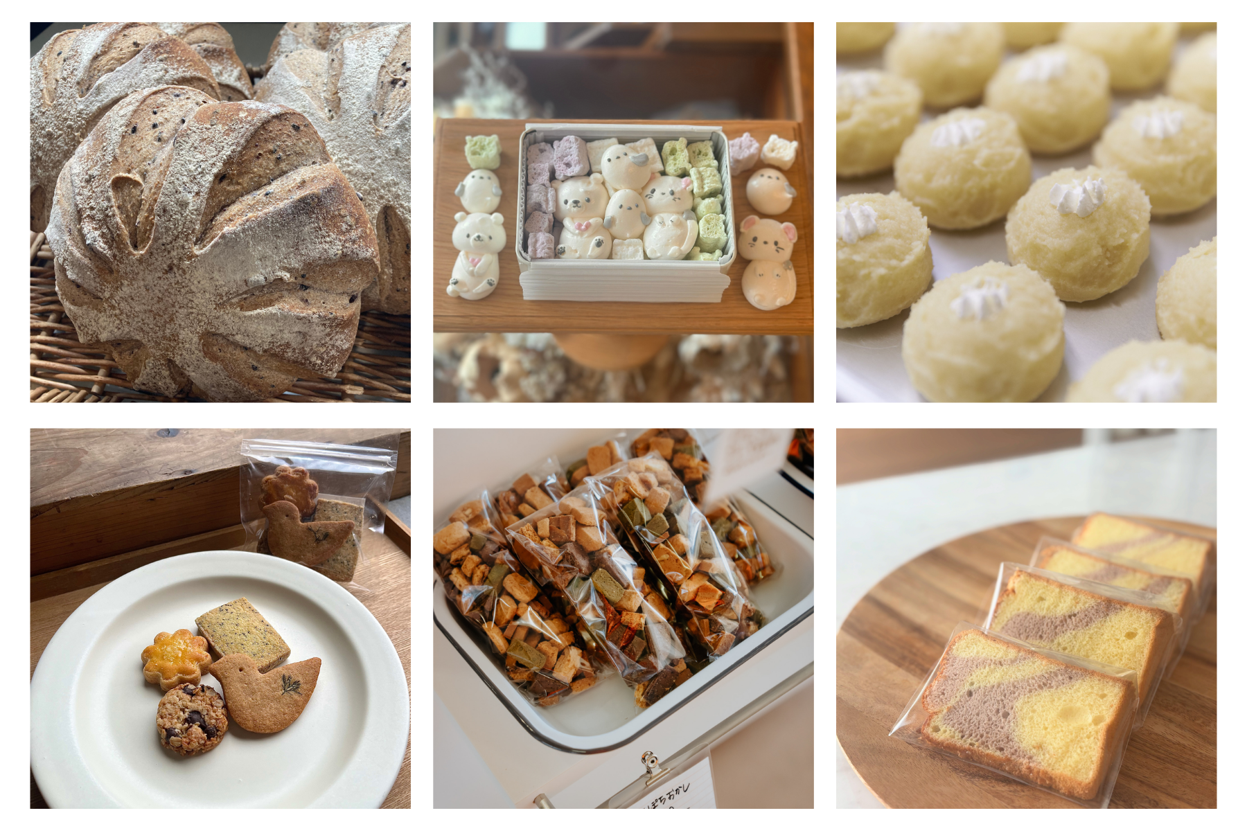 Atelier Cielion / Vergine Baccano (11/21,11/22) / 菓子工房マリアンナ / 嘉福堂キッチン (11/23,11/24) / 佳ん日な焼菓子店 / THE DAY (11/24) / シフォンと焼菓子ゆきやなぎ (11/21,11/22) / 十五島BAKEHOUSE(11/22,11/23,11/24) / 灯菓舎 (11/23,11/24) / どら焼きあんざい(11/23,11/24) / Patisserie PROUST / Puff muffin (11/21,11/22) / 晴れやま堂 / Boulangerie PELLANT / Prunelle / Helka /魔女のベーグル(11/23) / マリコ菓子舗 (11/21,11/22) / marucuru(11/21,11/22) / merci scone(11/21) / 森のパン~seasonal spot~(11/23,11/24)
