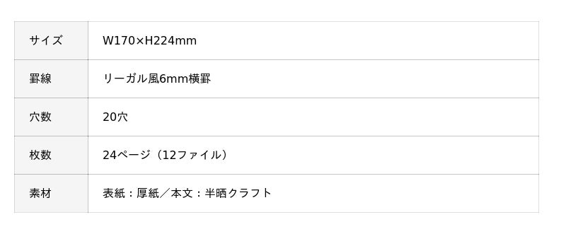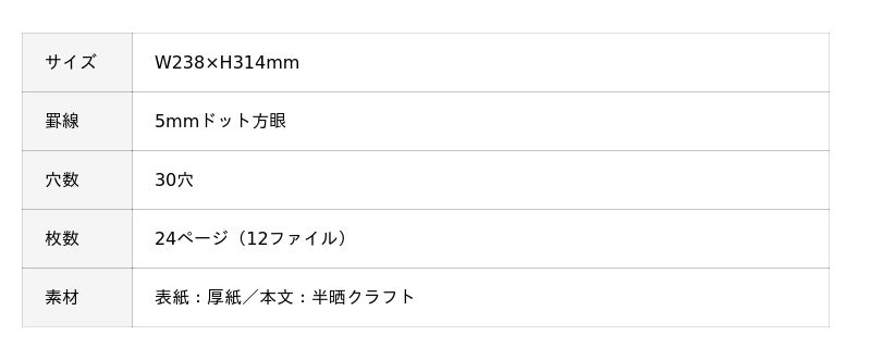 レシートや請求書の管理、資料やスクラップの保管など、記録と収納を同時に行いたいシーンに最適。穴は9.5mmピッチのJIS規格を採用しているので一般的な市販のルーズリーフ等も綴ることができます。