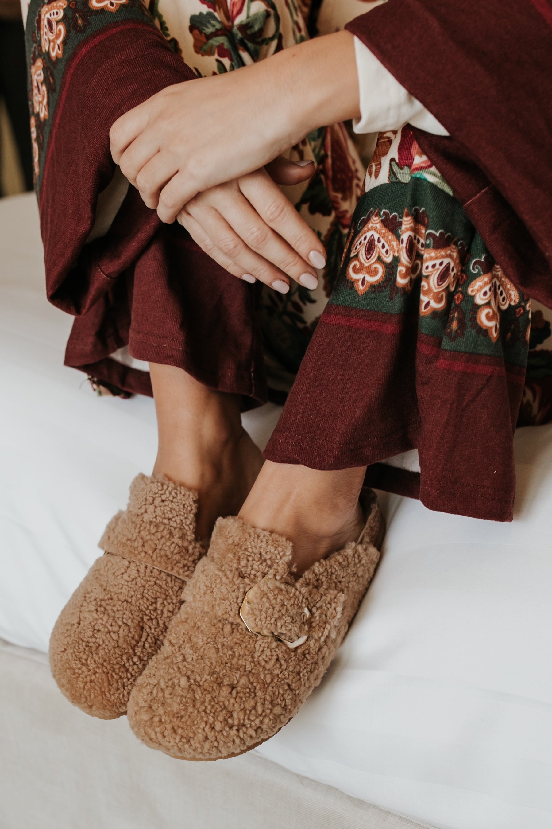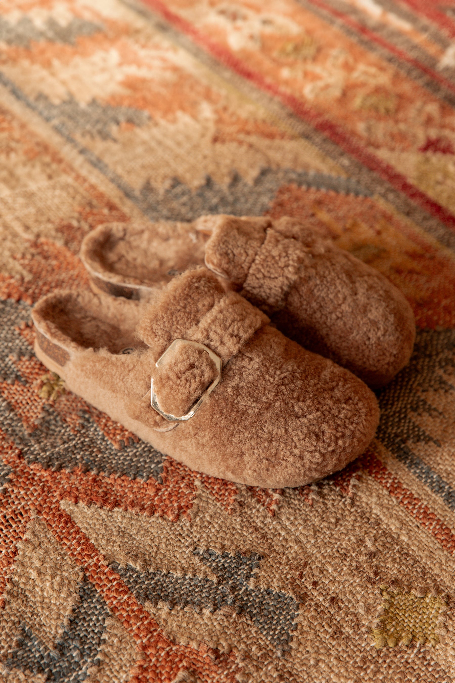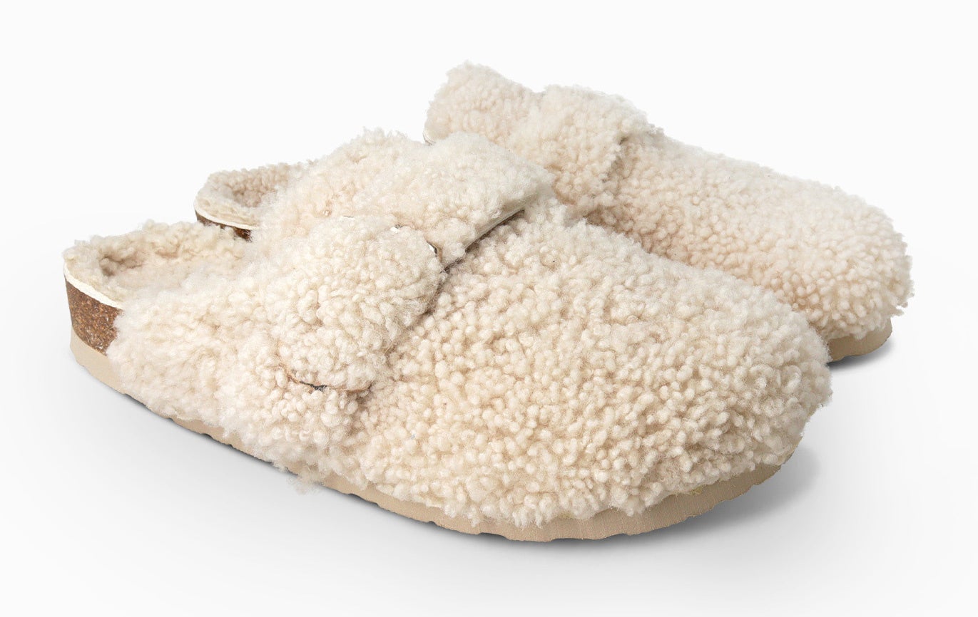 テディベアのようにふわふわとした風合いのヴィーガン仕様のボアをアッパーとフットベッドに配した新モデル。6角形のバックルがアクセントのベルトストラップでフィット感を調整可能です。天然コルクのミッドソールと人体構造に基づいて設計されたフォームのフットベッドが足への圧力を分散して安定性を高め、足の疲労を和らげて快適な歩行をサポートします。軽量EVAアウトソールで歩きやすさも抜群です。