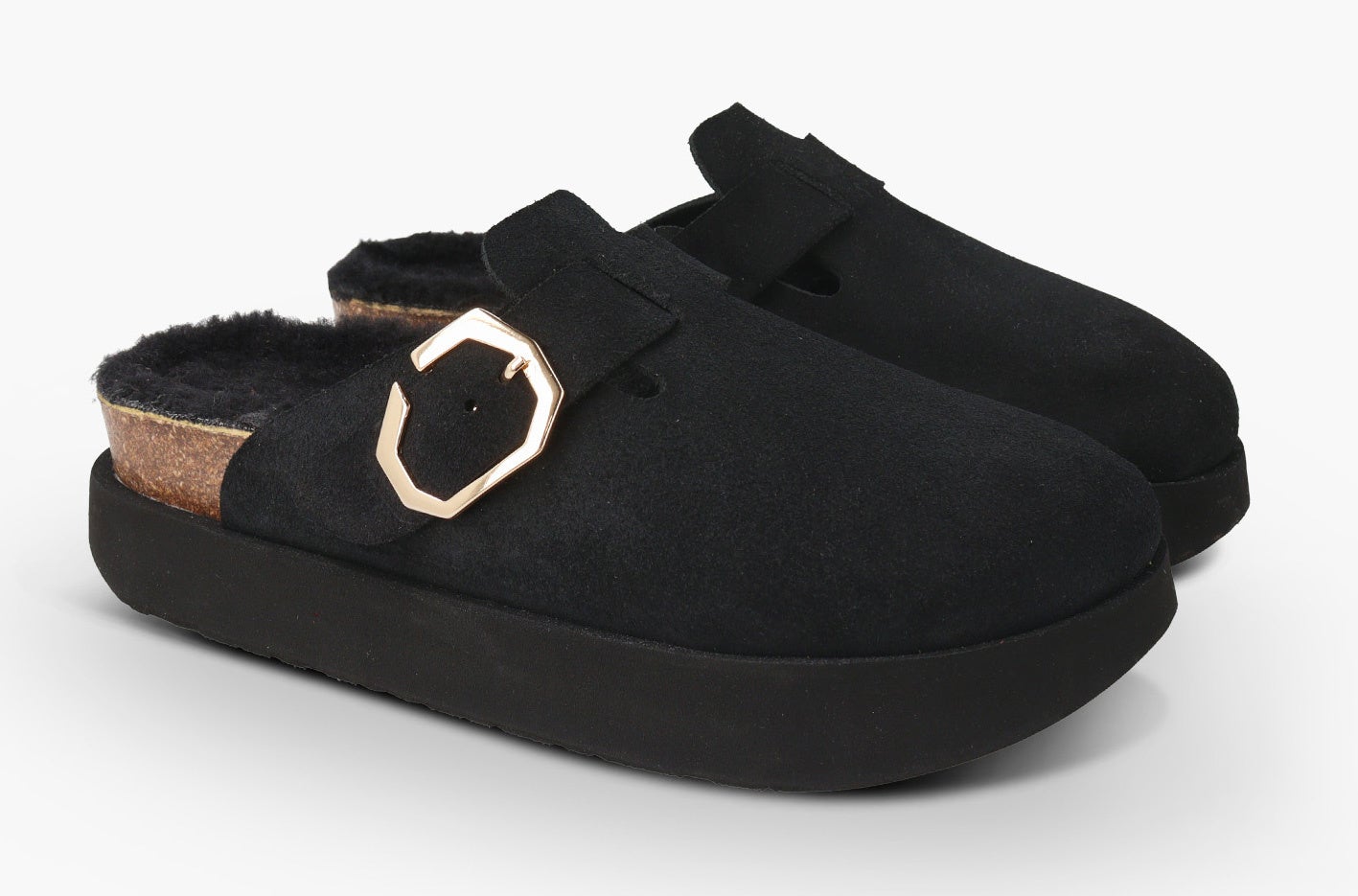 アッパーにLWG(※)ゴールド認定の高品質なスエード素材を使用した新モデルの厚底サンダル。フットベッドには天然ウールのボア素材を配し、暖かくソフトな履き心地です。天然コルクのミッドソールと人体構造に基づいて設計されたフォームのフットベッドが足への圧力を分散し、足をサポート。安定性を向上させ、快適な歩行を実現します。ベルトストラップでフィット感を調整でき、高さ2.6cmのEVAアウトソールでスタイルアップも叶います。