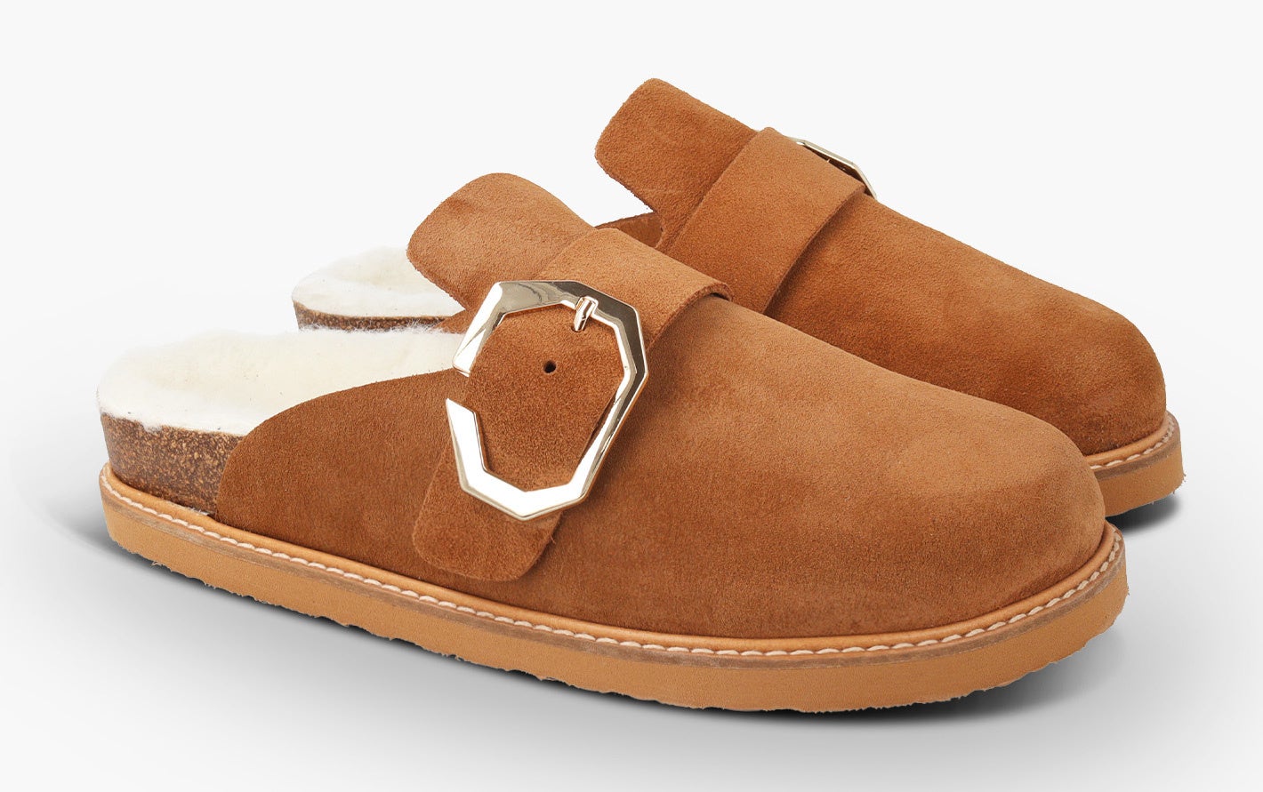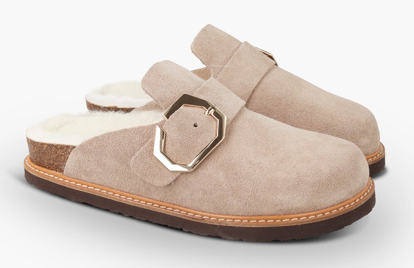 アッパーにLWG(※)ゴールド認定の高品質なスエード素材を使用した新作のバックストラップサンダル。フットベッドには天然ウールのボア素材を配し、暖かくソフトな履き心地です。天然コルクのミッドソールと人体構造に基づいて設計されたフォームのフットベッドが足への圧力を分散し、足をサポート。安定性を向上させ、快適な歩行を実現します。バックストラップでフィット感を調整でき、アウトソールには軽量EVAを採用。