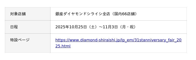 31st Anniversary Fair▶https://www.diamond-shiraishi.jp/lp_em/31stanniversary_fair_2025.html