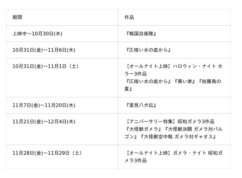 ※11月21日(金)~12月4日(木)の昭和ガメラ3作品は日替わりで上映を予定