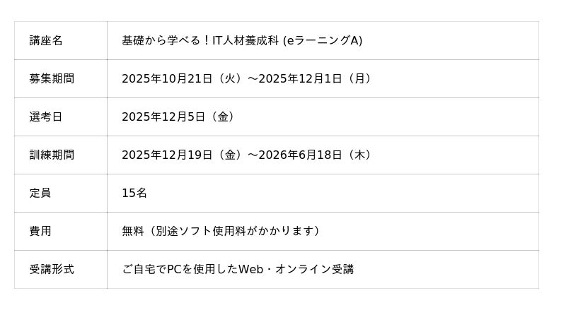 【カリキュラム詳細】 http://job-training.jp/wp-content/uploads/2025/10/IT_12_ibaraki.pdf