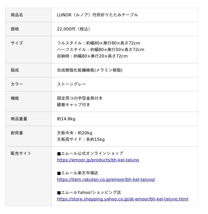 “寝る・座る・たたむ”に高い専門性を持つ健康家具ブランドEMOOR(エムール)から、「円形おりたたみテーブルLUNOR(ルノア)」が新登場しました。