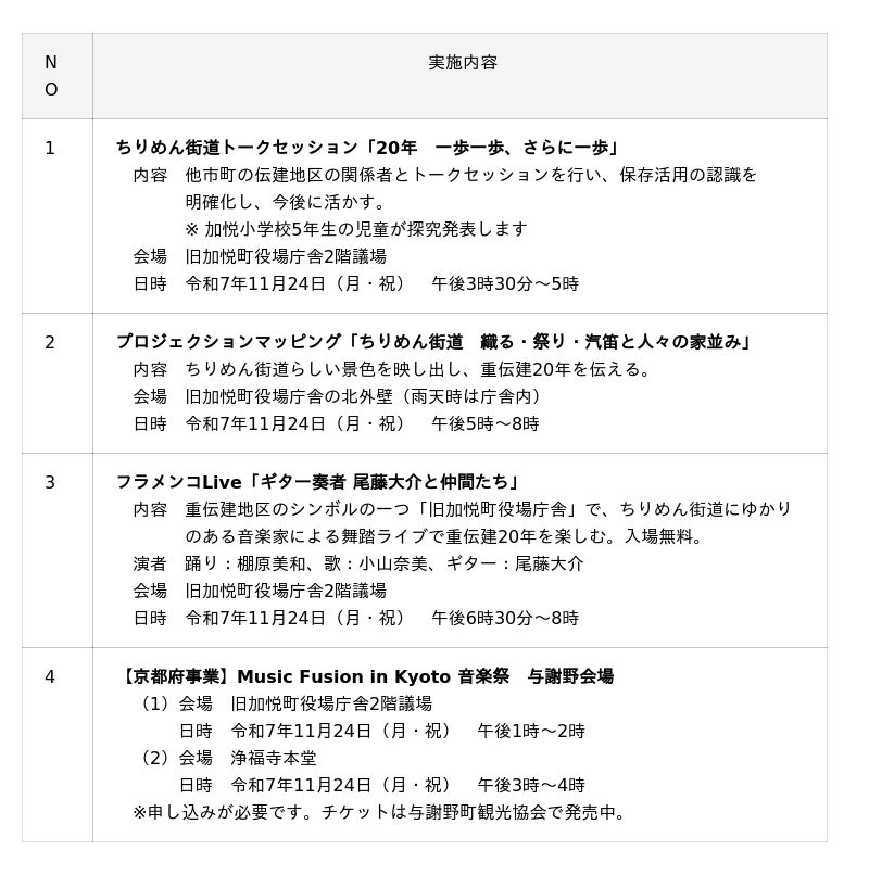 与謝野町加悦伝統的建造物群保存地区(通称:ちりめん街道)が、重要伝統的建造物群保存地区に指定されてから20周年となるため記念事業を開催します!!