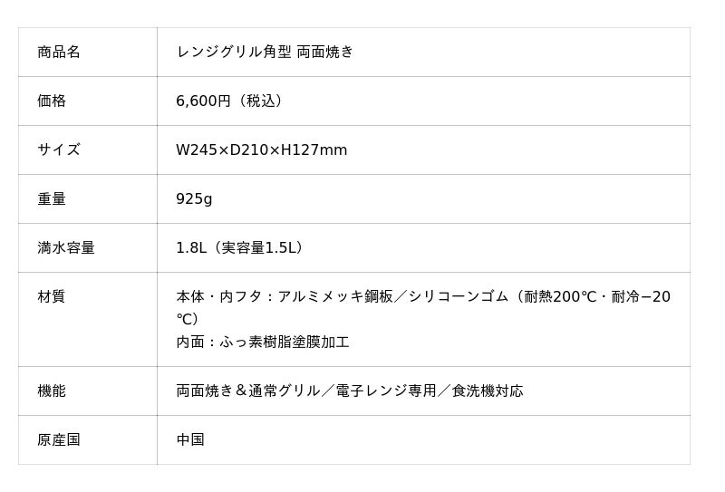 チキンソテーや餃子など、電子レンジで香ばしい両面焼きが可能です。