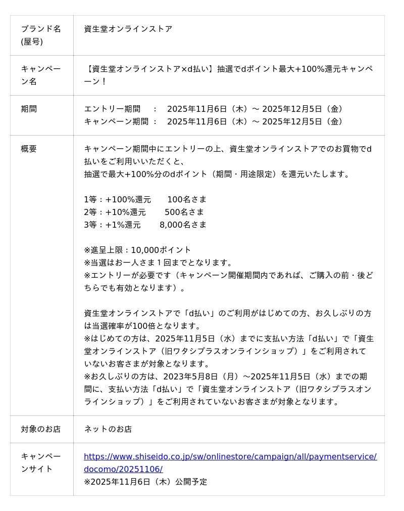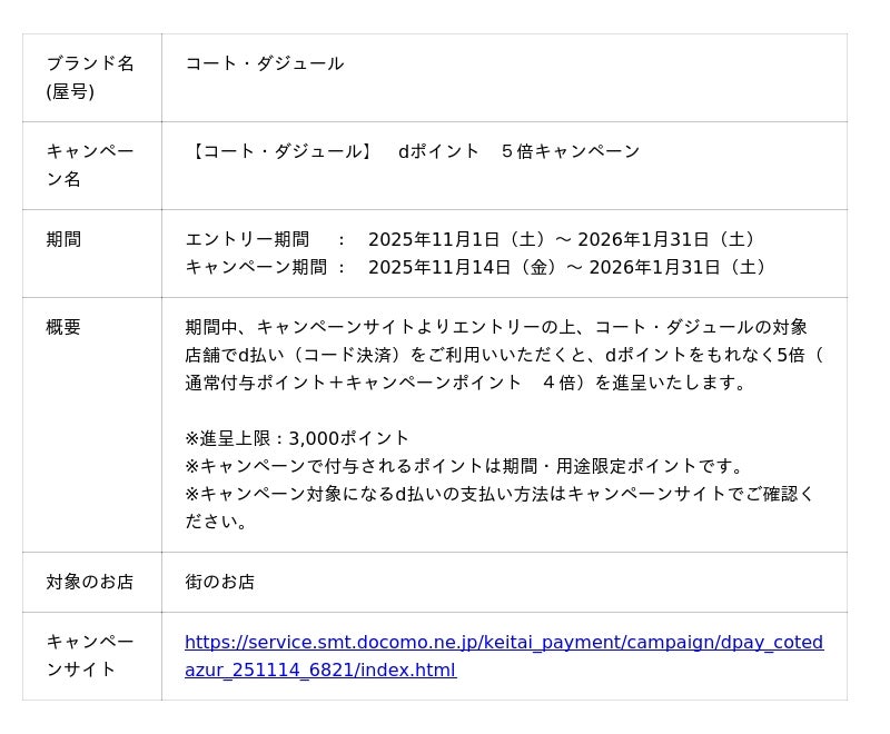 株式会社NTTドコモ(以下、ドコモ)は、「dポイント」「d払い(R)」においておトクなキャンペーンを開催いたします。詳細は、下表のとおりです。