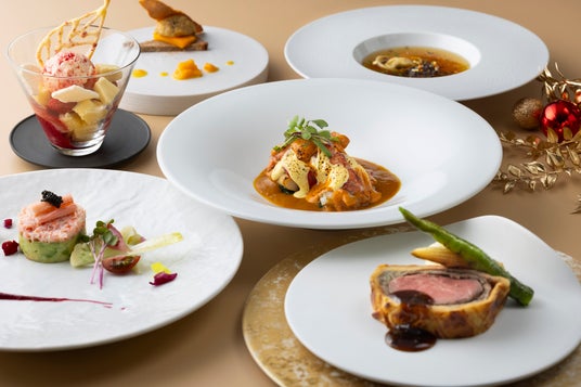 クリスマスは全店舗共通で、ホリデーシーズンの華やかな雰囲気をホテルでお楽しみいただきたいという想いから世界三大珍味やオマール海老など厳選した食材を使い、赤と金を随所に散りばめた華やぎのあるお料理をご用意いたしました。