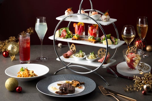 クリスマス限定のイブニングハイティー。プレステージ シャンパン「ドン ペリニヨン」での乾杯の後は、「ヴーヴ・クリコ」や7種のカクテル、紅茶などをフリーフローでご提供。華やかなセイボリーは、一品ごとにドリンクとのマリアージュをご体験いただけます。スタンドにはキャビアをのせたベニズワイガニとアボカドのタルタルなど前菜7種。魚料理にはオマール海老と金目鯛にホワイトソースとチーズをかけて焼き上げた一品をご用意。肉料理には、トリュフが香るソースでお召し上がりいただく、フィレ肉のグリルをご提供いたします。クリスマスの夜は、夢のように華やかなひとときを、グラスを傾けながら料理とドリンクの調和とともにお楽しみください。