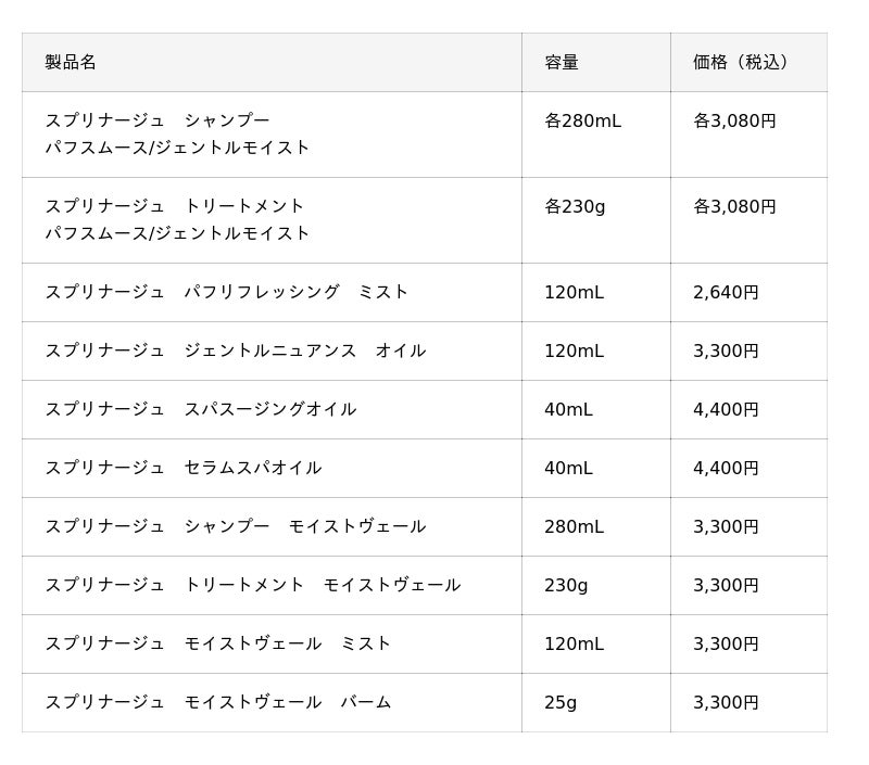 「肌にいいものは、髪にもいい。」自然由来の“肌髪成分”を贅沢に配合したスキンケア発想のスプリナージュ。