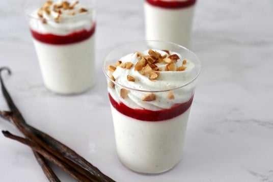 焙煎バニラの香りをしっかり移したクリームでつくる、なめらかなミルクプリン。甘酸っぱいベリーソースが、味わいに鮮やかなコントラストを添えます。