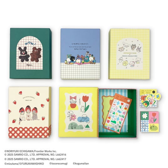 人気クリエイターのメモやシールなどの文具雑貨を詰め合わせたBOX入りセット。全5種類。