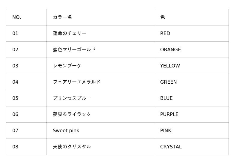 全8色のカラーバリエーションで、あなたの”推し色”に合わせた最高の輝きをお届けします。