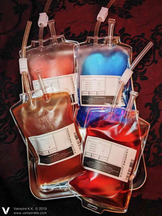 輸血パックを模したドリンク「エクスタシー」(別名ヴァンパイアジュース)