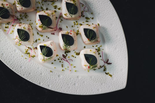 ニュージーランド産のオーラキングサーモンを丁寧に火入れし、イカ墨入りのトマトソースがアクセント。酸味とハーブの効いたラヴィゴットソースでお楽しみください。