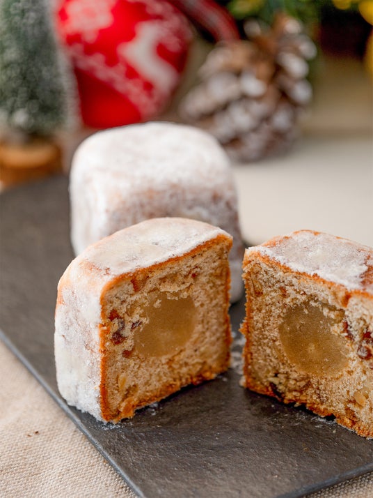 クリスマスまでの時間を楽しむお菓子「シュトーレン」。オリジナル配合のラム酒に漬け込んだドライフルーツや、ナッツ、スパイスがたっぷりと練り込まれた生地は、しっとりと口どけの良い仕上がりです。