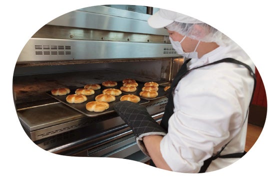 お店にはいつも焼き立てが並ぶように、その日の天気や時間、シーンにあわせベストなタイミングで焼き上げています。北海道の素材で大切に作ったパンだからこそいちばんおいしい出来たてを味わってほしい。できるだけたくさんの人に届けるため、一度に沢山焼きすぎず少しずつ何度も焼き上げています。