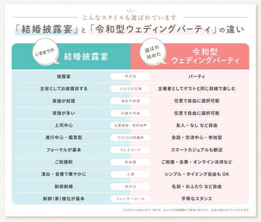 「結婚披露宴」と「令和型ウェディングパーティ」について